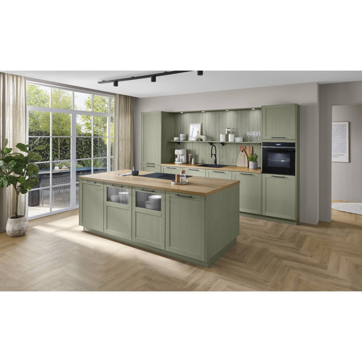El verde, siempre actual: un tono versátil que aporta frescura y armonía al diseño de tu cocina.